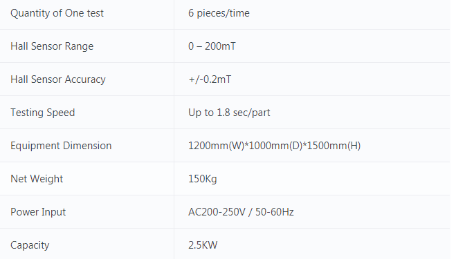 測試項目包括極數、N/S通量密度、最小通量、最大通量、單節距誤差、累計節距誤差等。